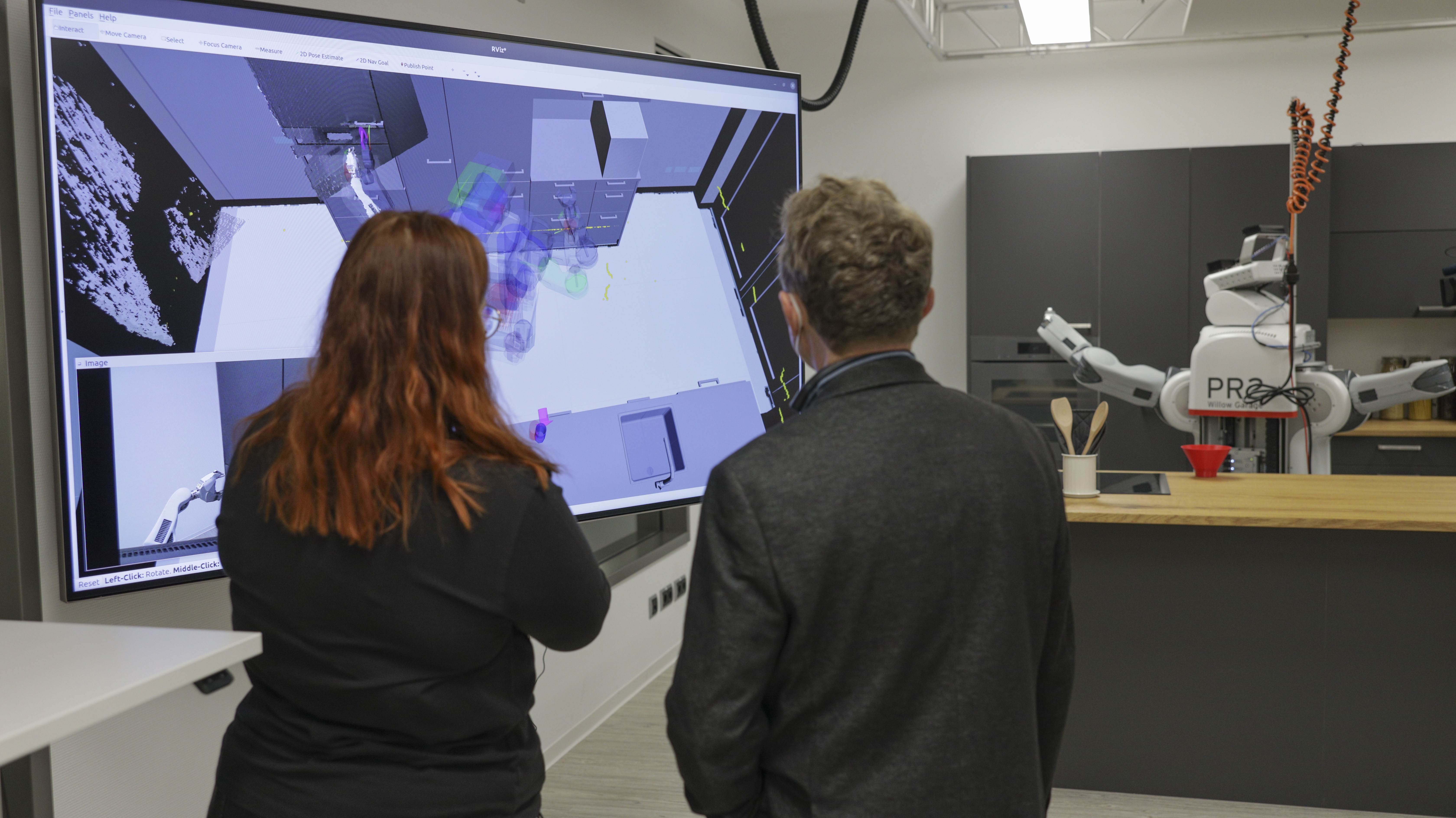 Dr. Karinne Ramírez-Amaro, associate professor at the Chalmers University of Technology in Sweden, here with Professor Michael Beetz, gave a talk about the ways in which robots can learn and reason from their experiences. Despite having to operate on a limited scale due to pandemic restrictions, the two-day Lab Opening was a resounding success that fostered connections between research and industry. A separate 'friends and family'-event was also held in January, where our staff showed the new labs to interested people in their lives. We were particularly grateful to be able to host these events in person again after a long time and that they were accompanied by such exciting discussions and an overall atmosphere of lively exchange. Although the focus of the event was to open the doors of our new laboratories to the public, it is also important for us as a research institute to keep our doors open, symbolically speaking, beyond events such as the Lab Opening.