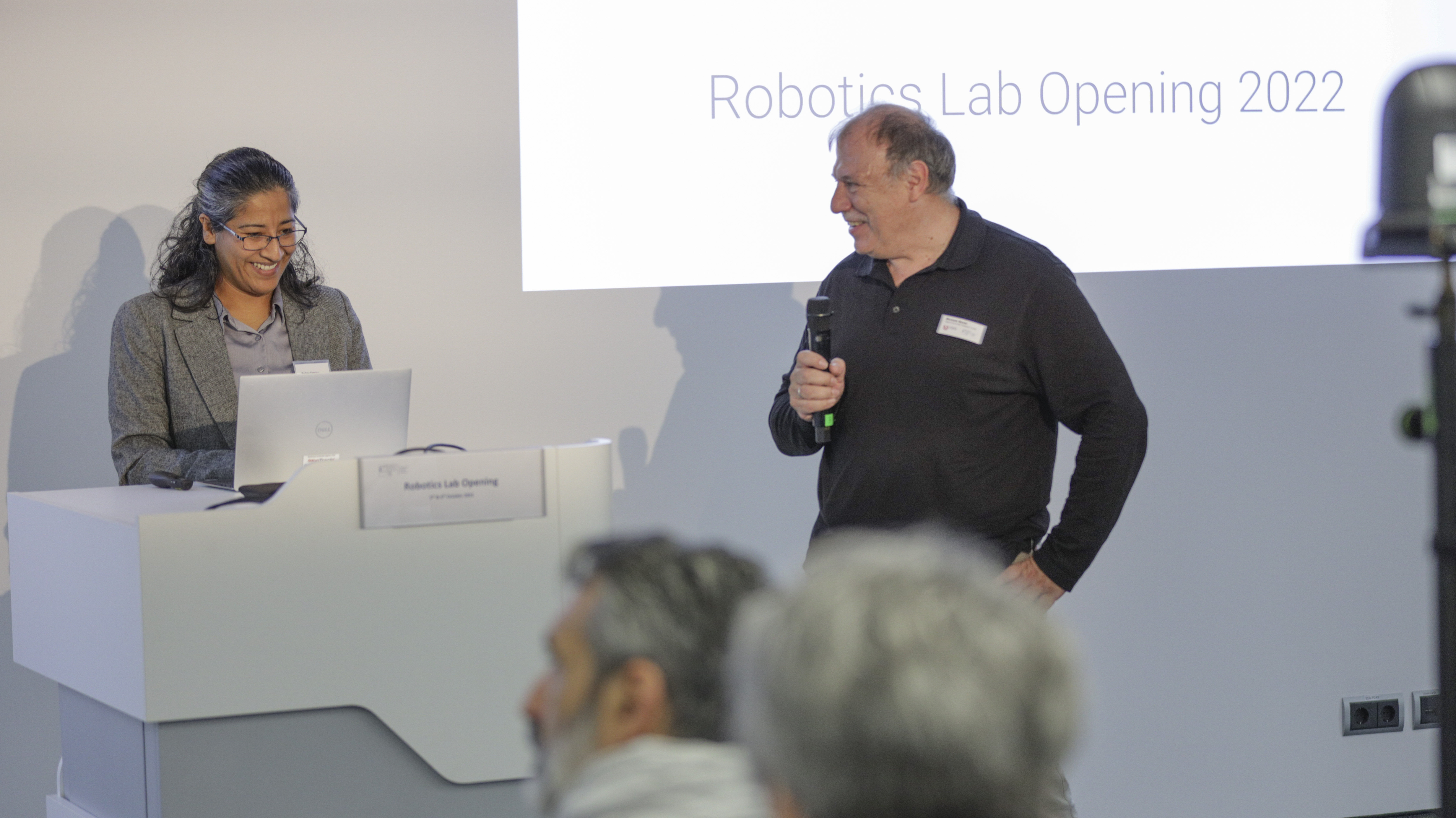 Dr. Karinne Ramírez-Amaro, associate professor at the Chalmers University of Technology in Sweden, here with Professor Michael Beetz, gave a talk about the ways in which robots can learn and reason from their experiences. Despite having to operate on a limited scale due to pandemic restrictions, the two-day Lab Opening was a resounding success that fostered connections between research and industry. A separate 'friends and family'-event was also held in January, where our staff showed the new labs to interested people in their lives. We were particularly grateful to be able to host these events in person again after a long time and that they were accompanied by such exciting discussions and an overall atmosphere of lively exchange. Although the focus of the event was to open the doors of our new laboratories to the public, it is also important for us as a research institute to keep our doors open, symbolically speaking, beyond events such as the Lab Opening.